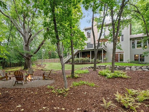 Exceptional private, custom home meticulously updated and cared for looks & feels like a brand-new home, set on a very private 0.7-acre lot in Long Acres. Wonderful views of trees and nature from nearly every room. Open foyer, living room with walls of windows, inviting kitchen with white cabinetry, ss appliances, granite/ marble countertops, large center island with seating, opens to a spacious family room with stone fireplace. The informal dining area opens to a large deck overlooking the private backyard and there's a formal dining room to easily accommodate family and guests. Primary bedroom with sitting room, 3 additional bedrooms up, and a private separate den/ office. The lower level has a comfortable family area and plenty of room for exercise, storage, or whatever your needs are, a bedroom and 3/4 bath for guests. The 3-car garage is an area to behold with space for a workshop and lots of storage. An absolutely awesome home & property for comfortable family and entertaining.