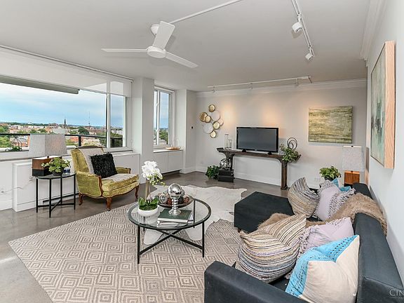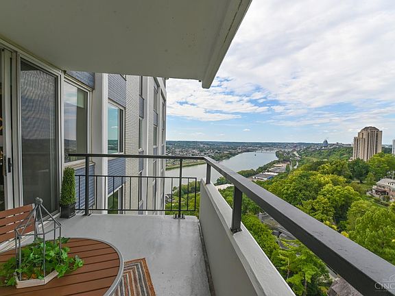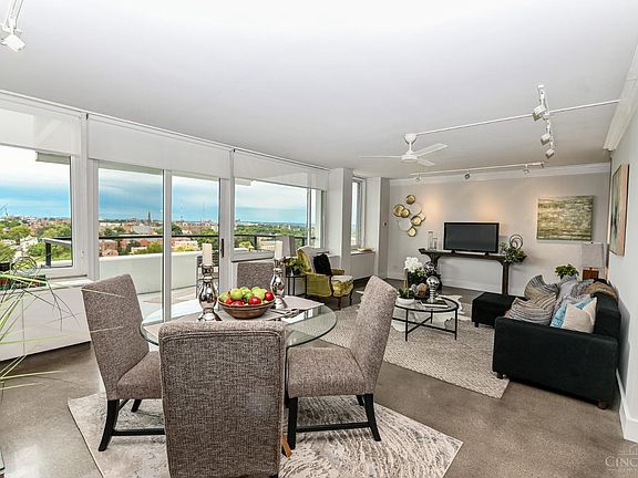 Welcome to 2401 Ingleside Ave 10D! 2BR/2BA modern condo in iconic River Terrace in East Walnut Hills overlooking the Ohio River with beautiful City views. Open concept. Private balcony. Polished concrete floors, soapstone counters, custom cabinetry, stainless appliances. Primary BR with 2 generous closets and ensuite with tiled shower and double vanity. In-unit laundry; washer/dryer set convey. $22k upgrade to HVAC. 24-hour security. HOA includes 1 garage space, 1 off street parking spot, valet parking, heat, AC, water, Spectrum cable, internet, fitness ctr and community room plus large storage space. 10-year tax abatement in place until 2029.