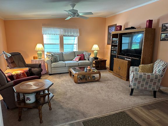 Active 55+ Community - Nestled on a quiet street, this sun-filled home welcomes you with cheerful coastal paint colors and beautiful flooring throughout. The galley kitchen offers abundant counter space, plenty of cabinets, and an inviting eat-in area, plus a separate dining space for gatherings. The primary bedroom includes a versatile bonus area ideal for an office, relaxation, or hobby room along with an ensuite featuring dual vanities and a spacious walk-in closet. Enjoy the bright, airy atmosphere in the sunny screened-in room and the comfort of a new 2025 HVAC system. A perfect blend of charm, function, and natural light awaits!
