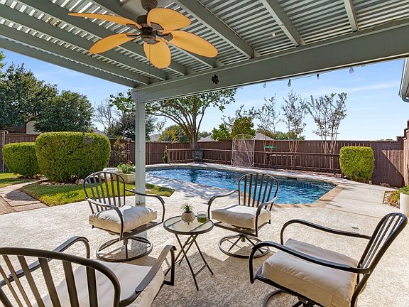 Experience the perfect blend of style and functionality in this meticulously maintained one-story home. Conveniently located in the heart of Carrollton, this beautiful property is move-in ready. The heart of the home showcases an expansive kitchen and living room with a cozy fireplace for added comfort. The kitchen features white cabinetry, granite countertops, stainless steel appliances, a gas cooktop, and a natural stone backsplash, along with a breakfast area overlooking the pool. The thoughtfully designed floor plan offers open living spaces, while warm hardwood floors create a welcoming atmosphere. A flexible sitting or dining room provides the perfect space to fit your lifestyle. The spacious primary suite boasts vaulted ceilings, two walk-in closets, and a beautifully tiled bath with dual sinks and a vanity. One bedroom easily adapts to a nursery or home office, offering ultimate flexibility for your family’s needs, while the additional bedrooms provide comfort and privacy for family or guests. Step outside to your own private backyard oasis featuring a sparkling pool, patio with pergola, and a deck—perfect for relaxing, entertaining, and gathering with family and friends. Located in a friendly, well established neighborhood, this home is just minutes from restaurants, shopping malls, walking trails, major highways, and airports. Enhancements and updates include: Pool (March 2025): tile, coping, pump, spray deck; HVAC (September 2025); Carpet and Paint (October 2025); Garage Door (April 2025).