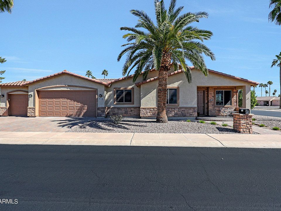 Do you need garage space, a HUGE kitchen, lots of storage space? This the home for you!! 2280 sq ft home with a very private backyard with a peak-a-boo to the Apache Wells golf course. Over 1000 sq ft of garage space and the majority of it is air conditioned!! 4th garage is over height and will fit a lift. Side turn garage door openers.
