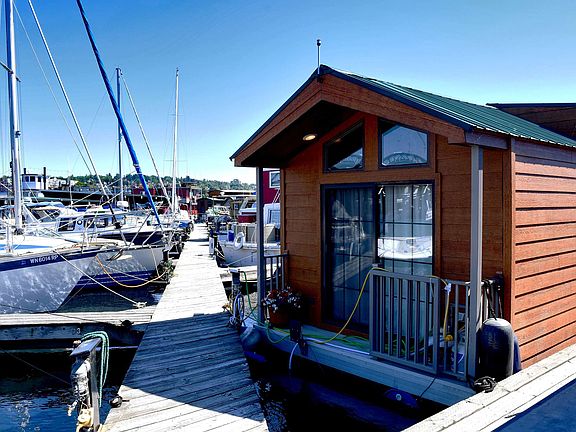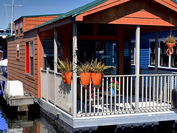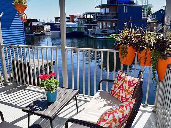 Live on the lake! WELL MAINTAINED "Charlotte" houseboat. Enjoy the summers on the covered patio entertaining guests. High ceilings & open concept bringing in natural light w/ view of water. Easy to maintain and manage w/ restaurants & shops within walking distance making this the perfect getaway w/ little effort! Potential Bonus to build up for rooftop deck! Affordable slip rent per month + $200 live-aboard fee, includes water + garbage. Parking slip and off-street parking. No pets allowed.