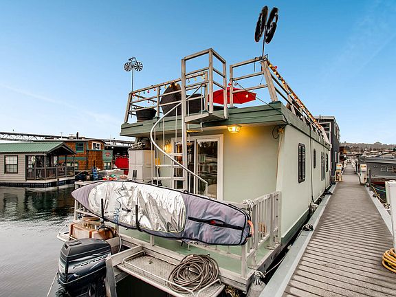 Welcome aboard La Dolce Vita, a wonderful one level Seattle houseboat, laundry, fully furnished, excellent layout large open living area, full-size kitchen, 3/4 bath and bedroom on the main level. Spiral staircase to full fiberglass rooftop deck with 360-degree views of Lake Union, Seattle Skyline, & wonderful houseboat community. Aluminum pontoon hulls just inspected. Dimensions 50' X 15'. Slip rent w/liveaboard $860 Per Mo incl. liveaboard & water, no pet, no rentals. Furnished & incl. kayak.