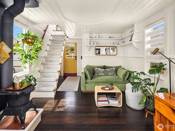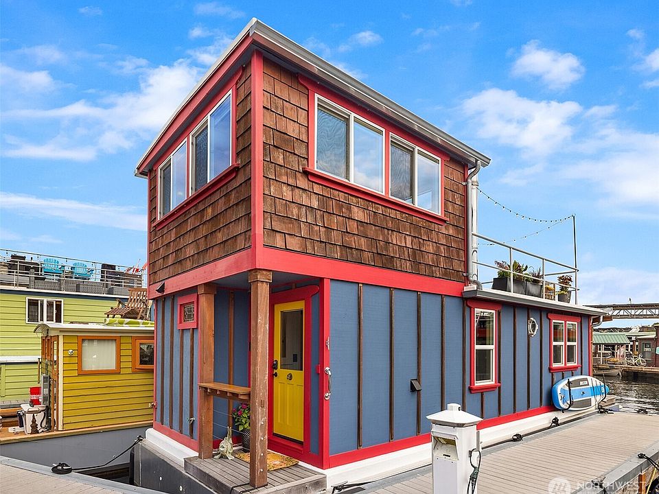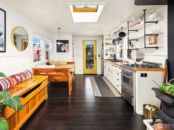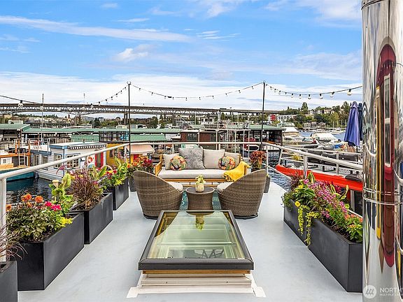 Welcome to Hah Choo, a 2002 Thomas Bailey Custom 39 House Barge that captures the best of waterfront living. Filled with natural light, this meticulously maintained home offers views of the Seattle skyline and a vibrant, walkable neighborhood w/Gas Works Park and the Burke Gilman Trail just steps away. With high ceilings, a well-designed layout, a modern kitchen, & generous storage, Hah Choo is one of the most livable houseboats on the lake—perfect for cruising to dinner, catching a sunset on the water, or simply enjoying the magic of lakeside living. Refinished hardwoods, cozy wood stove, a stunning roof deck, spacious bath w/luxurious shower, onboard washer/dryer, rain detecting skylight & more. Come live the quintessential Seattle dream!