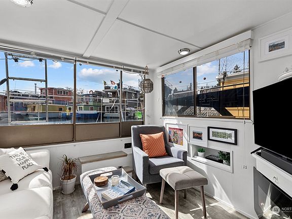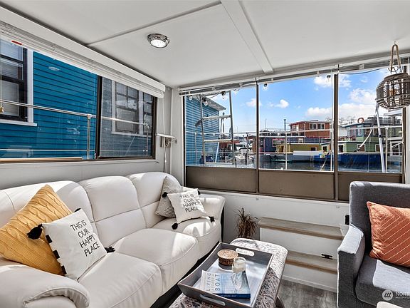 Experience the serenity of waterfront living on Lake Union! This charming floating on water residence is priced to sell fast & comes with over $12k in recent upgrades. Sellers are relocating. Don't miss this unique opportunity to own your piece of floating paradise at a small price point. Moored at the Seattle Marina next to Gas Works park, Burke-Gilman Trail and thriving Fremont; Everything you need & want is at your fingertips. Home comes fully furnished + 2 paddle boards & below deck storage. Sprawl out in recent 2nd bed addition w/ private wrap around curtains. Just turn the key and you're home! On site amenities include showers, restrooms & boat launch. Dues are $640 Moorage + $250/M Live Aboard. Boat engine has been removed.