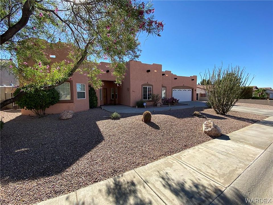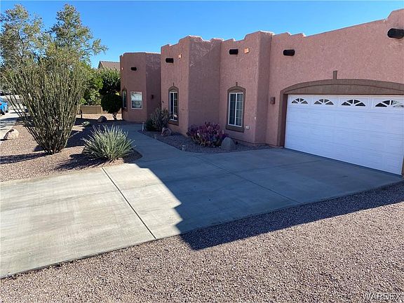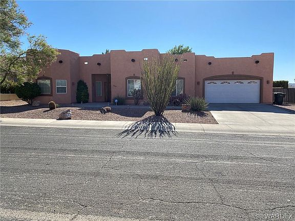 Gorgeous Santa Fe home located in a beautiful Neighborhood! Sidewalks in the neighborhood to enjoy walking on. The split floor plan has 3 bed, 2 bath, very large living room and dining room open to the kitchen with plenty of cabinet storage, including wide two door pantry. Large size master bedroom with fireplace, walk-in closet and master bathroom with separate bathtub and shower, and dual counter sinks. Over size 2 car garage that is 24 ft deep. Wood frame custom built storage shed in backyard for extra storage room. Wide RV gate with RV or boat parking area. The backyard covered patio area "includes a SPA/HOT TUB hook-up" is perfect for you to enjoy that sunny Arizona weather and the sunset with a beautiful view over the Kingman mountains. Also, an uncovered patio under the open sky to enjoy the stars at night. Fully landscaped backyard with waterfall, fruit trees, mature trees and a garden area. Fully landscaped frontyard. Don't wait, call to visit this home today!
