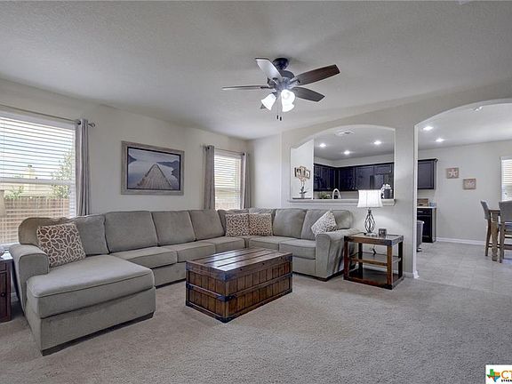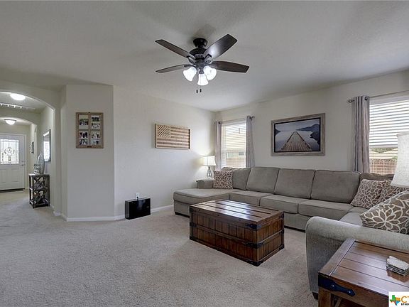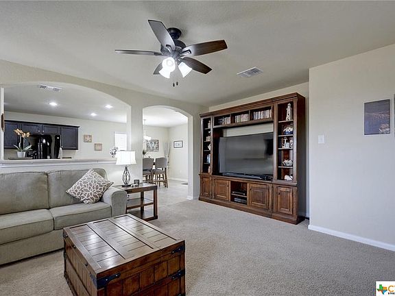 Large culdesac lot!! Onsite built storage shed, washer, dryer, refrigerator, curtains, blinds convey. Open living, dining, kitchen area. Nice updates to include recessed lighting, faucets, hardware on cabinets, ceiling fans in all bedrooms. Center island at kitchen. Dedicated office/study in addition to 3 bedrooms. Home is waiting on you!