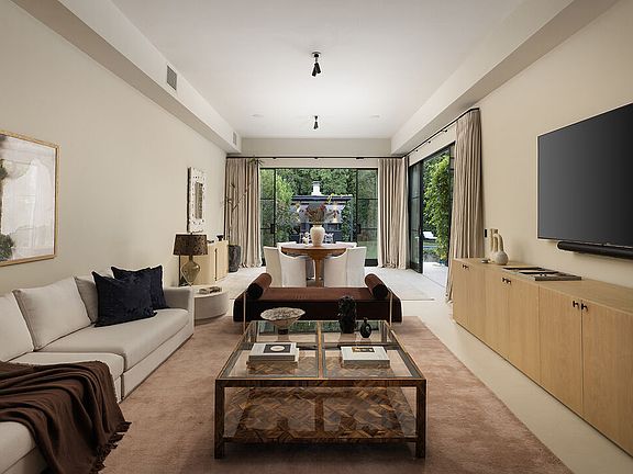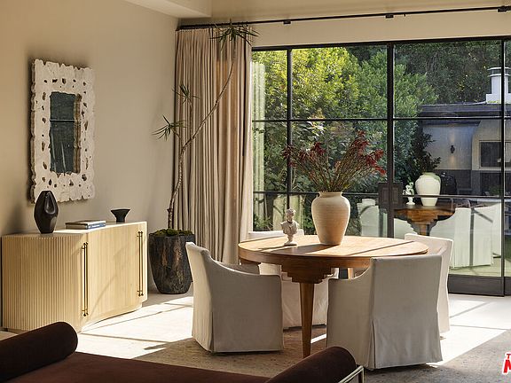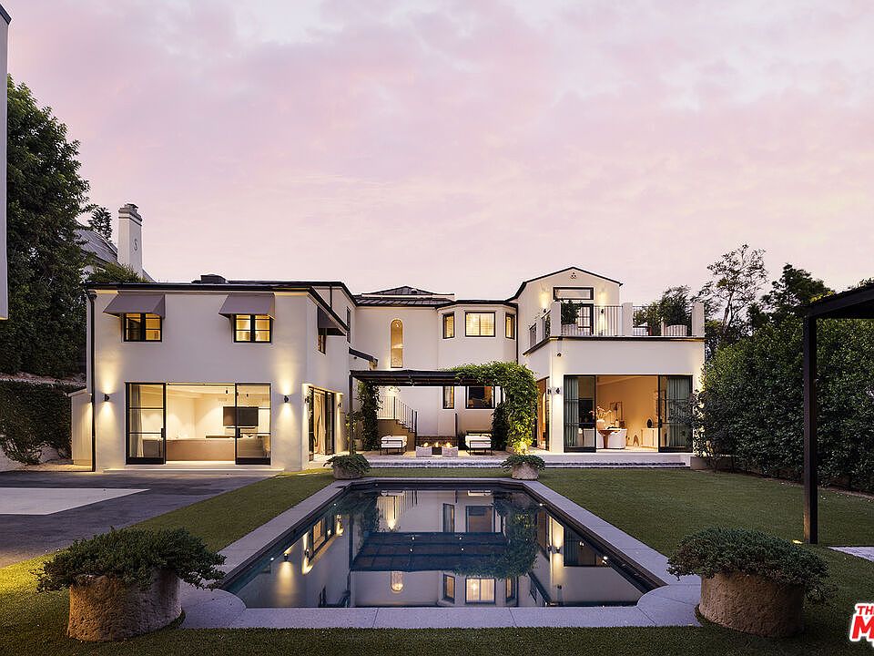 Set behind gates on one of Los Feliz's most sought-after streets, this elegantly reimagined 1930s estate reflects a timeless pairing of artful craftsmanship and modern refinement. Thoughtfully redesigned by acclaimed designers Kathleen and Tommy Clements, the estate spans approximately 7,200 square feet across a main house, guest house, and poolside loggia - each space flowing effortlessly into the next, crafted with warmth, intention, and ease. Grand yet intimate, the interiors unfold with rich, chevron-patterned flooring, steel-framed doors, and curated finishes that speak to understated luxury. Natural light filters through oversized windows, illuminating the expansive yet inviting living spaces. A formal living room, anchored by a stately fireplace, sits adjacent to a family room and dining area, all designed with respect for the home's original character. The kitchen, timeless yet modern, features custom cabinetry, marble countertops, and top-tier appliances. Five bedrooms and seven baths are thoughtfully positioned throughout, including a primary suite of impressive scale and serenity - a retreat in its own right. Beyond the interiors, the grounds are a private sanctuary. High hedges and layered landscaping surround a glistening pool, outdoor lounge, and dining terrace, while a sports court adds additional entertainment value. Moments from Griffith Park and the best of Los Feliz, this exceptional architectural residence offers a rare blend of architectural integrity, comfort, and privacy in one of L.A.'s most coveted neighborhoods