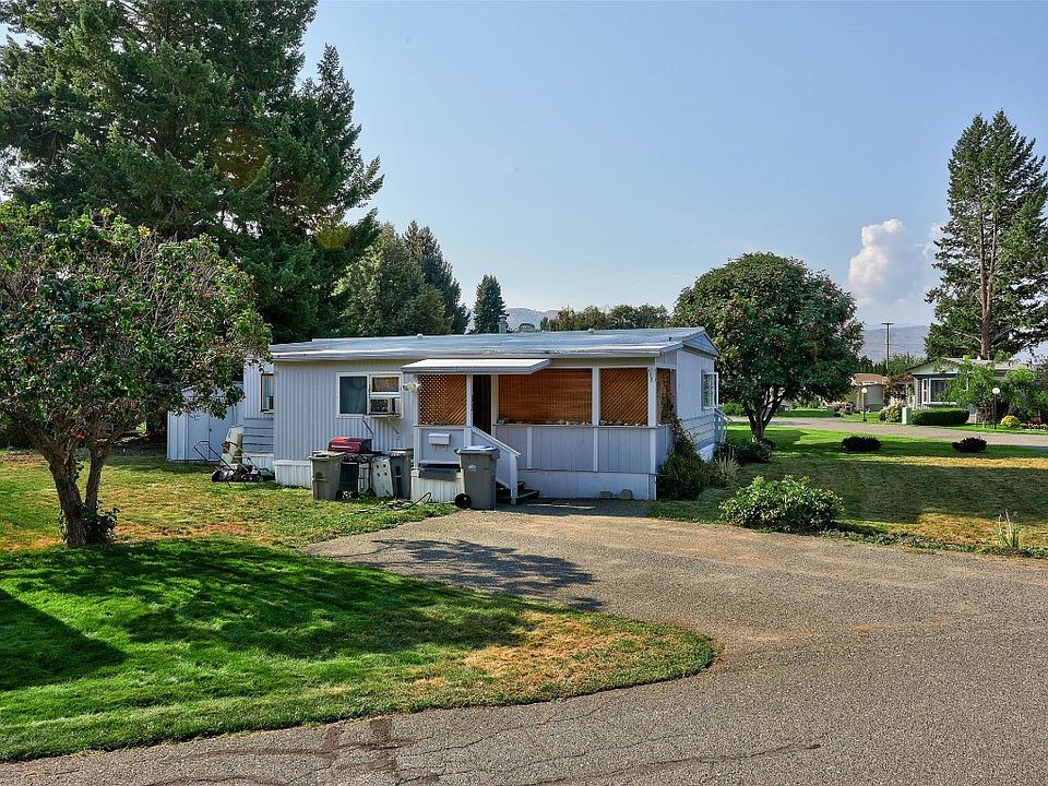 Come check out this amazing opportunity to be in the beautiful park like setting of Brock Estates. Situated in the adult section of this well maintained park, this quiet home is ready for someone trying to own their own place, at a very reasonable budget. Here you don't need to share a wall with someone, you have your own space and yard. Pets are allowed with park approval (2 cats or 1 cat and one 15" dog) with restrictions. There is plenty of room with two bedrooms, one 4 piece bathroom, a large entry, covered deck, and storage space. You have an updated Stove, along with mounted A/C units for those hot days, and a super durable EPDM roof. This lot is large giving you access to a nicely sized yard, with raised gardens, flower beds, open parking for two vehicles and a large storage shed for toys. Potential is here in spades waiting for you.