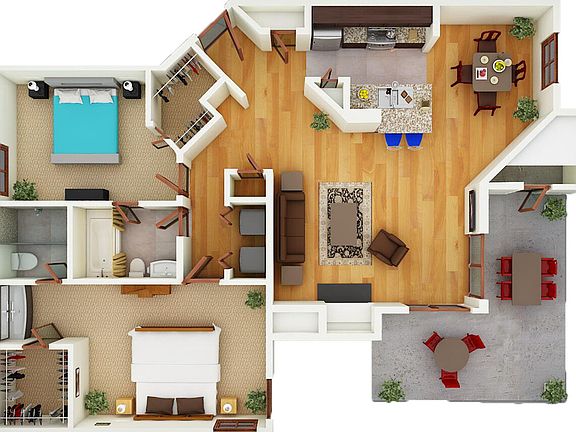 Resort Style Living! Our presidential homes offer granite counter tops in kitchen and bathrooms, stainless steel appliances w/ microwave, wood floors, and much more! We have Smart homes with keyless entry which you can control along with your thermostat from your phone! Also, including the Ring Doorbell/Cameras we have installed in all of our apartment homes. Relax in one of our two sparkling pools, grill at the outdoor kitchen, lounge in the cabanas, enjoy the therapy center with a 24-hour-state-of-the-art fitness center, massage therapy room, dry sauna, and 12 minute stand up tanning bed.