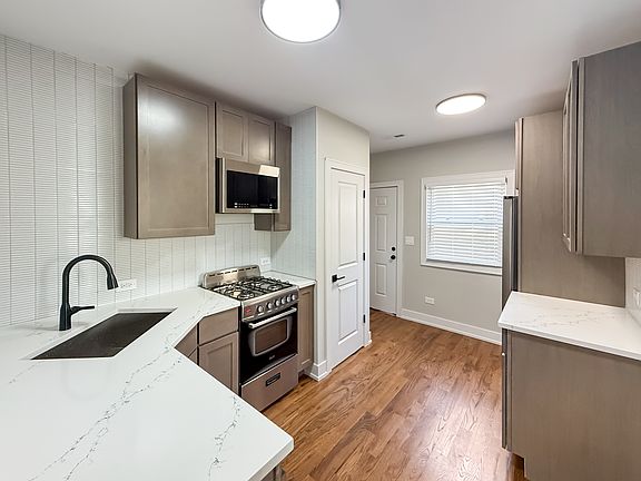 This apartment is located at 2405 S Leavitt St #2S, Chicago, IL. 2405 S Leavitt St #2S is in the Heart of Chicago neighborhood in Chicago, IL and in ZIP code 60608. This property has 2 bedrooms, 1 bathroom and approximately 670 sqft of floor space. This newly renovated unit is ready for immediate move-in and features hardwood floors throughout, creating a warm and modern feel. The kitchen is equipped with all stainless steel appliances, offering both style and functionality. Owner pays for water, sewage, and trash removal. Tenant is responsible for gas and electric. This is a non smoking building, parking spot available for $100/month, this is a one year lease. $350 move in fee per adult $300 pet deposit