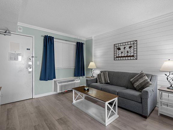 Welcome to your dream escape at this charming oceanfront condo! This beautifully designed 1-bedroom, 1-bathroom unit boasts 550 square feet of heated living space, offering the perfect blend of comfort and coastal elegance. This condo comes fully furnished, complete with all necessary kitchen items, ensuring a smooth and stress-free transition into your new oceanfront lifestyle. Plus, with rentals already on schedule, you can reap the benefits of a well-performing rental with ease. The living room features a stunning shiplap accent wall that adds a touch of seaside charm. Relax on the pull-out couch or gather around the dining table that comfortably seats four. The tasteful furniture and decor create an inviting atmosphere, perfect for unwinding after a day on the beach. The kitchen is fully equipped with a full range, microwave, and refrigerator. The kitchen and full bathroom, with a convenient tub shower combo, separate the living area and bedroom, making it possible to function as a two-bedroom space for increased flexibility and guest accommodations. The bedroom is the star of the show with breathtaking views of the Atlantic Ocean. The bedroom is equipped with a king bed, tasteful artwork, TV, dresser, closet, and sitting chair. A cleverly designed Murphy bed offers additional sleeping space, making the room versatile for hosting additional guests. Enjoy ocean views from your private balcony, a perfect spot for morning coffee or evening sunsets. Don't miss out on this incredible opportunity to own a piece of paradise. Schedule your tour today!