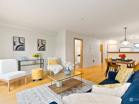Close to everything! This updated 2 story townhome style condo is move-in ready and easy to love. Features new carpet, new paint, spacious living room with balcony, open concept to kitchen with plenty of light. Conveniently situated along rapid transit and bus lines. The building has secure keyless entry, elevator, parking garage, and a unique community courtyard for connecting with neighbors. Easy access to I-5, library, coffee shops, restaurants, shopping, & schools. No rental cap. Pets welcome and comes with one parking space in secure garage.