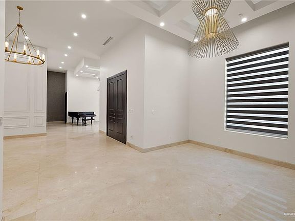 Experience refined living in this 6,229 sq. ft. residence located within the prestigious, gated community of San Miguel Sharyland Plantation. Designed on a grand scale, this home offers 4 bedrooms plus maid’s quarters, each with its own full bath and large walk-in closets. The layout includes a family room, two half baths, formal living, and formal dining areas. The modern kitchen features a waterfall island, floor-to-ceiling cabinetry, and premium stainless-steel appliances. A home theater room with plush recliner seating, wood-beamed ceilings, and a wet bar provide the perfect setting for movie nights or game-day gatherings. Outdoors, a covered patio with barbecue pit opens to a spacious backyard, ideal for hosting elegant soirees or enjoying peaceful moments with family. Offering flexibility for intimate living and grand occasions alike come and discover the elegance of this residence—schedule your exclusive showing.