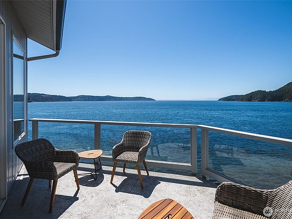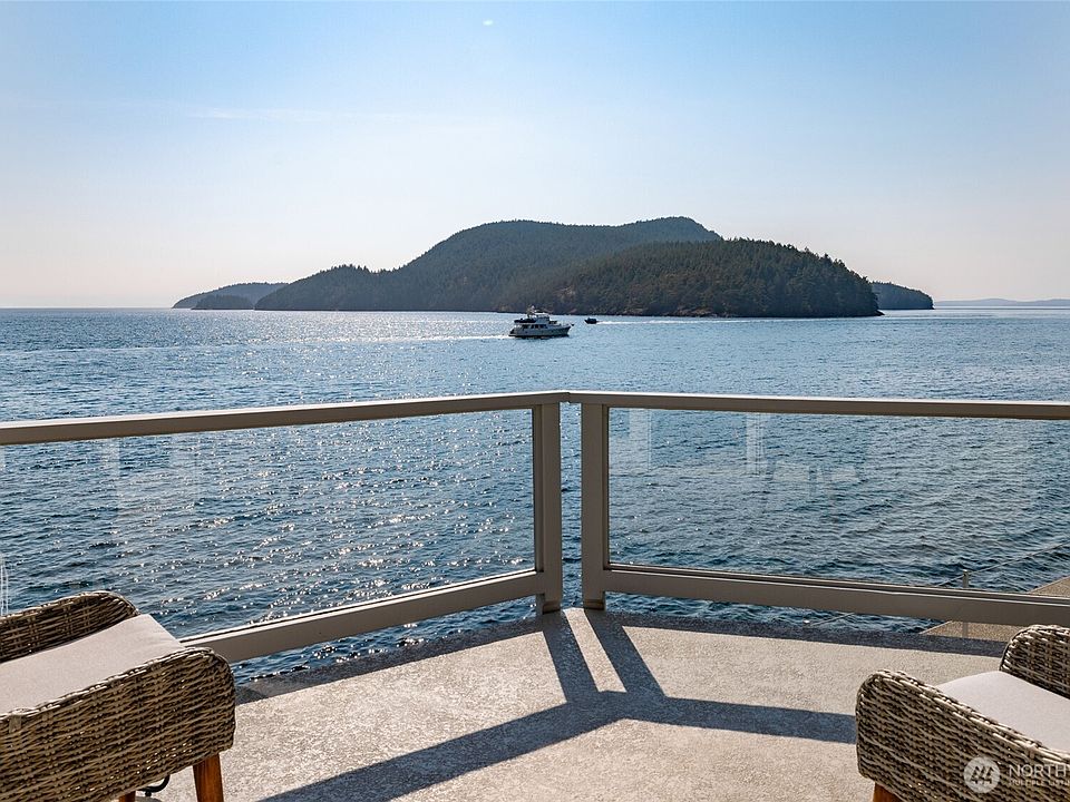 Waterfront Living large! Remodeled in 2019, this exquisite 2-bedroom condo by Burrows Bay offers unending views, sunsets, wildlife and many special features. Quartz countertops, LED lighting, skylights, new flooring and a lot of extra storage. With nine-foot ceilings, a private deck with storage, enclosed garage (with locked storage unit) and an additional outside parking space. Skyline amenities include tennis and pickle ball courts, waterfront parks, and clubhouse. The best Anacortes has to offer! These units don't come on the market often, don't miss this opportunity!
