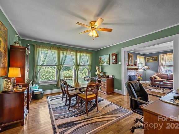 Step into this charming 1930s brick ranch nestled on just over 2 private, wooded acres—completely surrounded by forest, yet just minutes from vibrant downtown Morganton! This 2BR/2BA home offers the perfect blend of timeless character and thoughtful updates, including a metal roof, hardwood floors, and a cozy gas fireplace that adds warmth and charm. The flat, usable land is ideal for gardening & homesteading—offering space, freedom, and flexibility with no HOA. Two detached garages provide excellent space for parking, workshops, or creative pursuits. The main garage by the home does have electricity. An enclosed porch expands your living area and invites year-round enjoyment. Whether you're a first-time buyer, investor, or simply looking to simplify, this tucked-away retreat offers a rare balance of seclusion and convenience. Don't miss this unique opportunity!