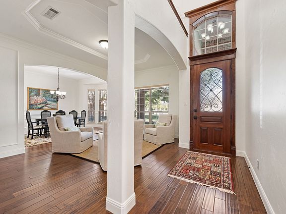 Experience refined Golf Course living in the heart of Trophy Club. Perfectly positioned on an oversized lot, this exceptional residence blends privacy, comfort, and resort-style amenities—designed for those who value both luxury and lifestyle. Just 15 miles from DFW Airport and zoned to award-winning Northwest ISD, the home sits in a golf cart–friendly community with access to Lake Grapevine, scenic parks, and miles of walking trails. Inside, a formal living area flows seamlessly into a spacious dining room, ideal for entertaining. A private study with built-in shelving offers a refined workspace. The updated kitchen, featuring double ovens, breakfast bar, walk-in pantry, and premium finishes, opens to an expansive living room for effortless daily living. Wood floors on the first level, new carpet throughout, fresh paint, and a remodeled primary bath with an enlarged frameless shower enhance the home’s modern, move-in-ready appeal. Upstairs, four generous bedrooms, a large game room with sweeping golf course views, and a media room provide space to relax and recharge. Outside, a backyard oasis features a 20×40 freshwater pool, lush landscaping, covered patio with gas fireplace, and a spacious lawn for pets and play. The serene golf course backdrop with direct access combines tranquility and recreation. With its premier location, thoughtful updates, expansive living spaces, and resort-style amenities, this Trophy Club home presents a rare opportunity to experience luxury living at its finest.