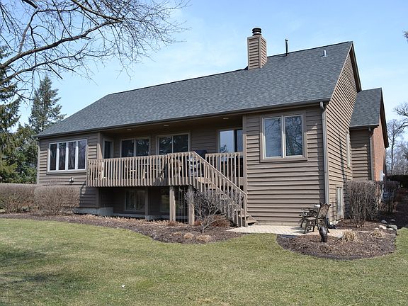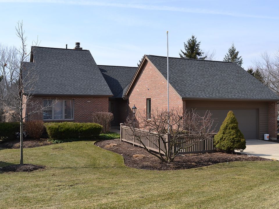 OUTSTANDING FREE STANDING BRICK AND CEDAR LUXURY RANCH HOME WITH FINISHED ENGLISH BASEMENT. GORGEOUS OAK FLOORS THROUGHOUT MAIN LIVING AREAS AS WELL AS STAIRS TO LOWER LEVEL. SPACIOUS KITCHEN WITH ALL OAK CABINETS AND LARGE ISLAND. OPEN GRACIOUS LIVING ROOM WITH VAULTED CEILING AND BRICK FIREPLACE. CROWN MOLDING IN FORMAL DINING ROOM AND SUN ROOM. BEAUTIFUL VIEWS OUT OF EVERY WINDOW. PATIO DOORS FROM SUN ROOM, LIVING ROOM, AND MASTER BEDROOM TO DECKS OVERLOOKING THE FLOWING STREAM AND POND/NATURE AREA. TONS OF ADDITIONAL ROOM FOR GUESTS IN THE FINISHED LOWER LEVEL. 3 FULL BATHS. WALK-IN CLOSETS. STORAGE. 2 HOT WATER HEATERS. QUALITY CONSTRUCTION WHICH WAS BUILT TO LAST. 2 CAR GARAGE WITH EPOXY COATED FLOOR.