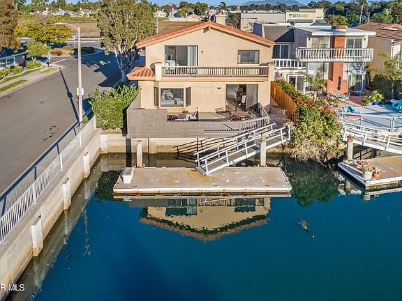 Your dream of living by the sea with your own private dock can come true with this magnificent Mandalay Bay waterfront home. With nearly 3,000 SF of living space, this bayside beauty is tucked away on a corner lot and faces west. This means spectacular sunsets are in your future, and a front row seat to the holiday boat parade and 4th of July fireworks. Whether you're BBQing and entertaining on your spacious lower deck, or lounging on the upstairs primary bedroom balcony, one thing is for certain: The picturesque water views and fresh, ocean air will make you feel like you're on a permanent vacation. This beautiful boat dock home is just steps to Seabridge, farmers markets, a variety of restaurants, and shopping. Not only will you enjoy the Oxnard beach life, but you can do so comfortably in the functional and open floorplan offered by this light and bright home. Were you hoping for 4 BEDROOMS? Not a problem, as the large loft can easily be converted to suit your needs! Upon entering, your eyes will be drawn to the windows that perfectly showcase the beautiful bay, as well as the airy two-story ceilings. The spacious main level features a bedroom with ensuite bathroom, a laundry room, a charming two-way white brick fireplace between the dining and living room, and kitchen with abundant storage, butcher block top center island, double oven, and a new stainless steel gas stove. Upstairs is an oversized secondary bedroom with a walk-in closet, a bonus room, and a generous primary suite with another large walk-in closet, high ceilings and a sweeping deck overlooking the tranquil channel. As if this all wasn't enough, this waterside retreat includes a 3-car garage with storage, new Chamberlain garage doors, and remotes with Wi-Fi capability. NO HOA, Mello Roos, dock fees, OR common walls! There is no greater time than now to make your dreams of owning a waterfront house a reality.