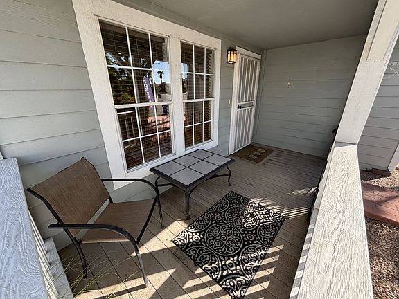 Welcome to The Meadows Arizona, a 55+ age-qualified active and vibrant community, where you can find yourself in your dream home. Here we have a secluded 2 bed, 2 bath home for sale featuring 1056 sq ft of beautifully designed open living space. This home features a large kitchen with butlers pantry, SS appliances, tile work and under cabinet lighting. The south facing covered porch is private and inviting, the large fenced back yard features a nice deck area, and there is even an oversized one car garage! Located in the desirable community at The Meadows Arizona, residents enjoy access to a range of premium amenities including a resort-style pool and spa, fitness center, clubhouse, grassy areas, sports lounge, and library. Conveniently situated near ASU, shopping, dining, major highways, parks, public transportation, and the airport, you'll have everything you need just minutes away. Whether you're looking for relaxation or recreation, this vibrant community has it all. Call us today to schedule a tour of this home!
