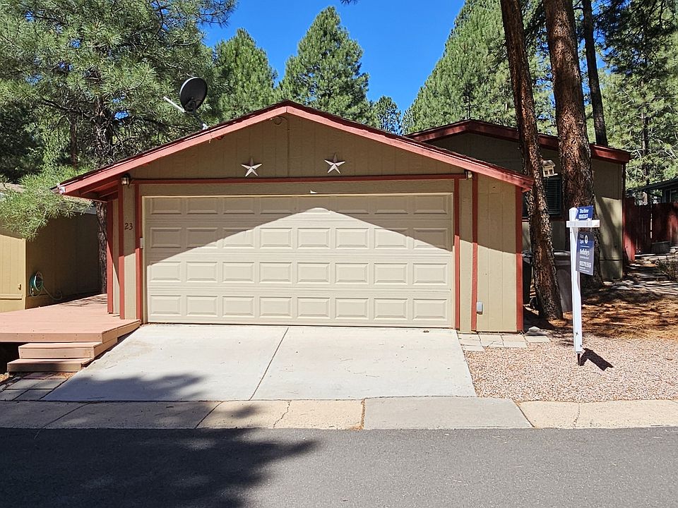This is a 2 bedroom, and 2-bathroom home located in west Flagstaff on Route 66. It has a small, fenced back yard, covered deck, 2 car garage, washer and dryer, and bonus room with shelving and tables for tenant use.