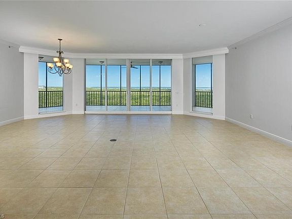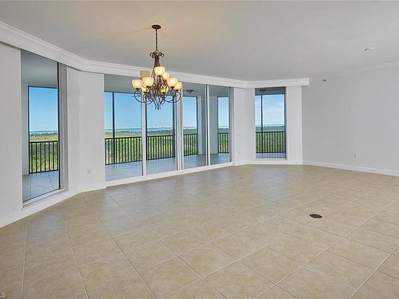 MAGNIFICENT VIEWS. Imagine coming home to the breathtaking beauty of stunning sunsets and panoramic views of Estero Bay, all from the comfort of your exquisite 4th-floor residence in Castella at The Colony at Pelican Landing. This home is adorned with light plank flooring throughout the spacious bedrooms and closets, and freshly painted walls- a clean canvas. The open floor plan boasts high 10 foot ceilings and impact-resistant windows and doors that ensure both elegance and safety. The expansive floor-to-ceiling sliding doors in the living room and primary suite lead to a magnificent screened-in lanai, where you can soak in pristine views of the Bay. Solid core doors throughout. The open-plan kitchen, equipped with granite countertops and stainless steel appliances, is perfect for entertaining. A GREAT VALUE! Don’t miss out on the chance to call this stunning property your own! Two car spaces in garage. Steps from the tropical style pool & spa and the best grilling station. Living at The Colony includes private membership to The Bay Club, formal and informal dining and events. Access to a private beach park, a huge tennis program, canoeing/kayaking, sailing club, bocce & pickle ball, the list goes on! Elective private golf options. The Colony is a quick jaunt to the airport and just a mile and a half to great dining and shopping.