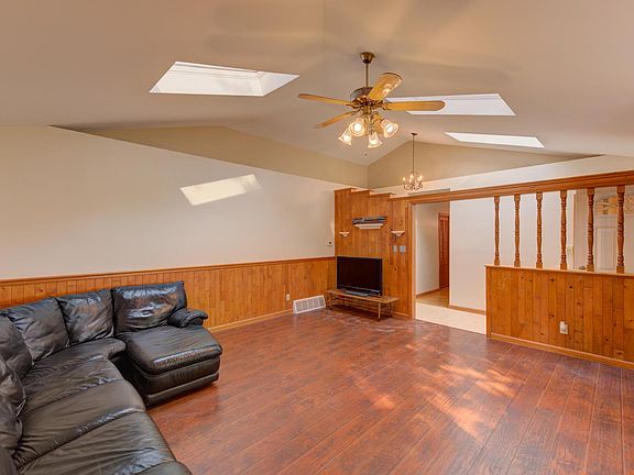 BRING THE DOG WITH! to this 4 BDR. 1.5 Bath RANCH HOME w/FULL BASEMENT & Heated 2 Car Garage on a 1.1 ACRE LOT. It features a SPACIOUS VOLUME CEILING living room w/3 SKYLIGHTS & Lighted Ceiling Fan & WOOD LAMINATE FLOORING along with a OAK CABINET, Tiled Floored COUNTRY KITCHEN w/LOADS of CABINETS, Counter Space, Walk-in Pantry and all Appliances. Its Freshly Painted, has FOUR NICE SIZE BEDROOMS w/SIX PANEL DOORS, WOOD TRIM and REPLACEMENT WINDOWS THROUGH_OUT. It has a CLEAN freshly painted FULL BASEMENT Partially Finished w/a room studded out. Out back is a LARGE DECK, Patio and a PET FRIENDLY Yard. Beyond the fencing is about another 1/2 acre which is part of this parcel to do what you want. Furnace & AC were both Cleaned & Serviced 9/13. NEW Siding, Roof & Skylights 2017