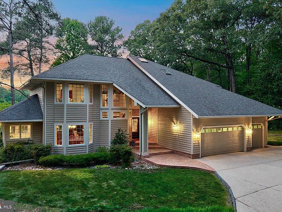 Welcome to Shea Landing — a stunning, private, gated 67± acre estate on the banks of Ingram’s Pond, perfectly positioned in the heart of Sussex County. Crafted as a personal retreat, this exceptional property blends natural beauty with unmatched amenities for the ultimate outdoor lifestyle. The estate features a network of paved and natural trails, open meadows, two stocked ponds, and over 1,000 feet of scenic frontage on Ingram’s Pond complete with a private pier. Wildlife thrives here, including resident Wood Ducks, Mallards, deer, Bald Eagles, otters, turkeys, and more — making it a haven for nature lovers and sportsmen alike. At the heart of the property sits a meticulously maintained 3-bedroom, 3-bath custom home offering over 3,900 square feet of living space, including a fully finished walkout basement. Step into the grand foyer and be welcomed by solid hardwood floors and a handcrafted staircase. The family room impresses with floor-to-ceiling windows flanking a striking brick fireplace, framing picturesque water views. Adjacent, the sunlit kitchen and breakfast nook provide a warm, welcoming space, complemented by a formal dining room for entertaining. The first floor also features an executive office with inspiring views, a full bath, and a spacious laundry/mudroom. Upstairs, a lofted balcony overlooks the living area below and leads to the luxurious primary suite, which includes a walk-in closet, spa-like en-suite bath with jetted tub, and private balcony with panoramic pond views. Two additional bedrooms and a hall bath complete the second level. The finished basement offers flexible space for a rec room, future in-law suite, and more. Outdoors, enjoy a sprawling composite deck overlooking landscaped grounds and serene woodlands. An attached 3-car garage is accompanied by an impressive 50' x 90' insulated pole building — outfitted with radiant heat, electric, water, an office, half bath, and a workshop. Ideal for storing boats, ATVs, hunting and fishing gear, and more. Whether you're seeking a peaceful primary residence, weekend getaway, or a private hunting and recreation retreat, Shea Landing delivers. With potential for future subdivision and development, the investment upside is as impressive as the lifestyle it offers.