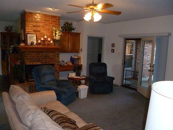 Bring your clients with confidence! This home is move-in ready! Large, open concept kitchen with beautiful wood cabinets, living room fireplace opens on two sides, exquisite crown molding in living, large master bath boasts its own hot water heater for instant hot water, 2 walk-in closets, storm shelter, back yard has RV parking w/ electricity, & 11.5 X 15 shop w/ electricity, plus another shed