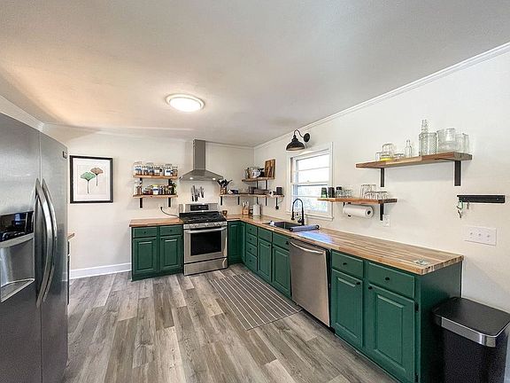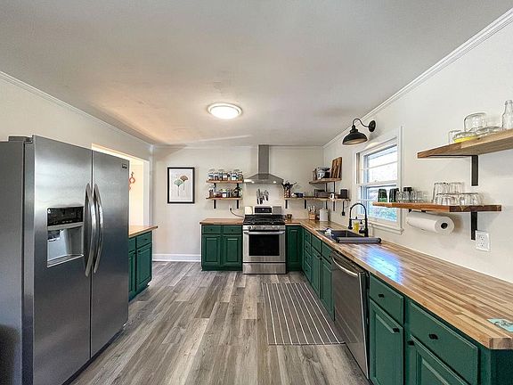 Beautifully updated 3 Bedroom RANCH home with nearly a half acre of land w/NO HOA! Stunning Hardwood floors welcome you into the Open Floor Plan w/natural light. Butcher Block Kitchen Countertops w/SS appliances and open shelving. Family Room features Engineered HW floors and dry bar, perfect for entertaining. Newly renovated Primary Suite with two closets and NEW WALK IN SHOWER, Vanity & Tile flooring. Full hall bath with tub connects to 3rd Bedroom and hallway, perfect for overnight guests or additional privacy. HUGE back Deck overlooking the yard. Storage shed with power AND outdoor shower! Don't miss this one!