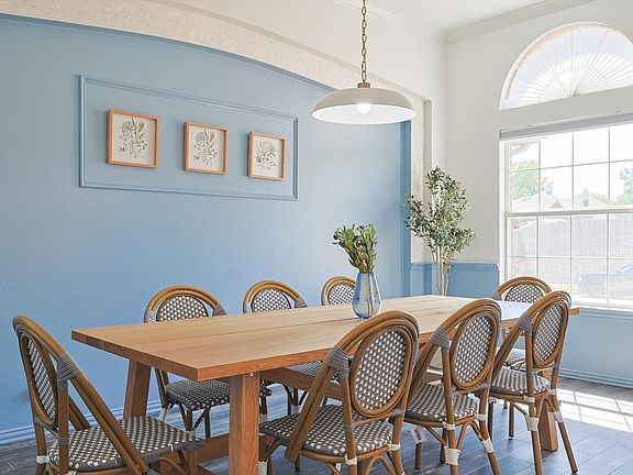 With a dining room as nice as this one, skip the hassle of traffic and waitlists and eat at home! Adorn with French-style accents, this stylish dining area has a restaurant-like feel and features enough seating for at least eight guests. Gather around and grab a seat. Don't forget to say "bon appetit" before digging in!