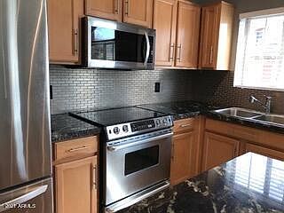 This beautiful 2 story townhouse has a rare ground level private backyard and patio, double master suites each with its own bathroom plus half bathroom downstairs for guests. Fabulous kitchen with highly upgraded granite countertops, stainless steel backsplash and top of the line stainless steel appliances. Brand new flooring and designer selected light fixtures and fans. Recently upgraded washer and dryer. Attached one car garage with epoxy floor. This townhome shows like a model. Multiple community pools, spa, gazebos, and grills. This is a great gated community with close distance to Tempe Market place, ASU campus, World Series Champions Chicago Cubs spring training and quick access to 202 & 101 Freeway