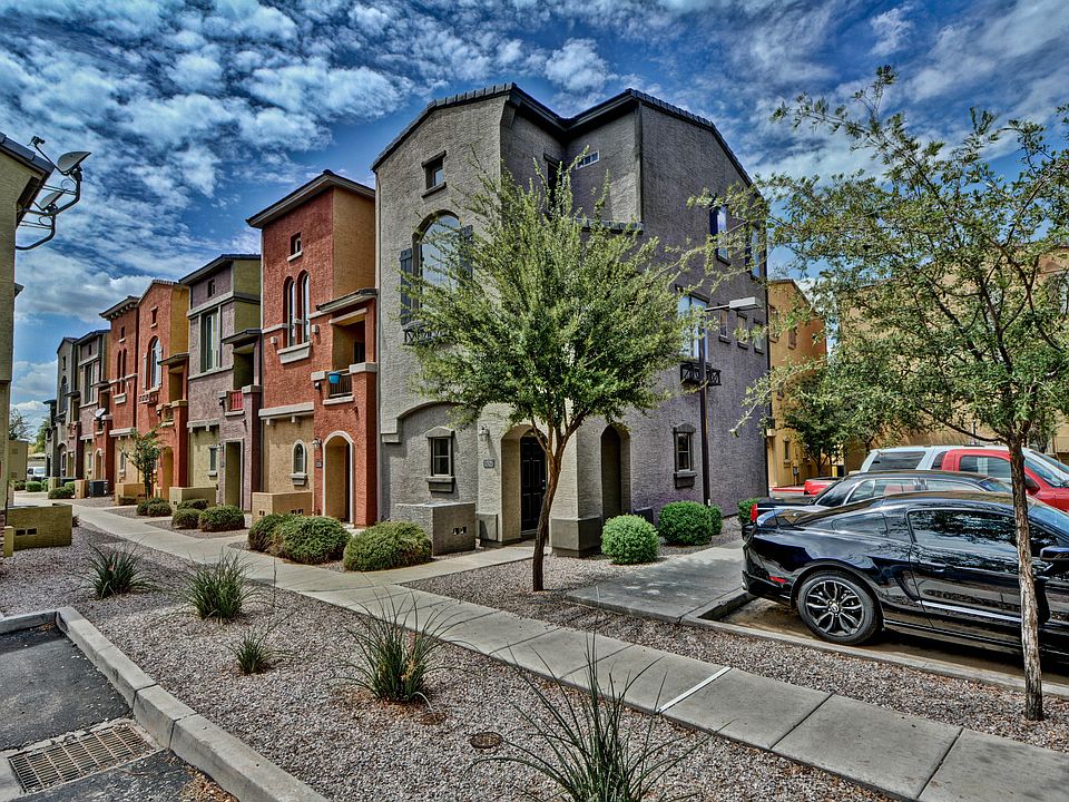 Own this Beautiful, Move-In Ready with BRAND NEW CARPET, 2 Bedroom, 2.5 Bath, 2 Car Garage Condo, North/South, Interior Unit both sides Insulated for Efficiency and is Quiet and Peaceful from ALL Community Activity. NO YARD-WORK, ENJOY YOUR SUMMER WITH THE SPARKLING, REFRESHING POOLS. Gated Community Close to ASU only 2.5 miles away, Old Town Scottsdale, Chicago Cub Spring Training Ballpark, Golf Course, Tempe Market Place, Mesa River View and so much more! Travertine Tile in Kitchen, Baths, and Entry. Wood Blinds Through-out. New Washer/Dryer, Brand New Microwave, Balcony off Great Room to enjoy your Beautiful Arizona Evenings. COMPLEX QUALIFIES FOR FHA FINANCING!