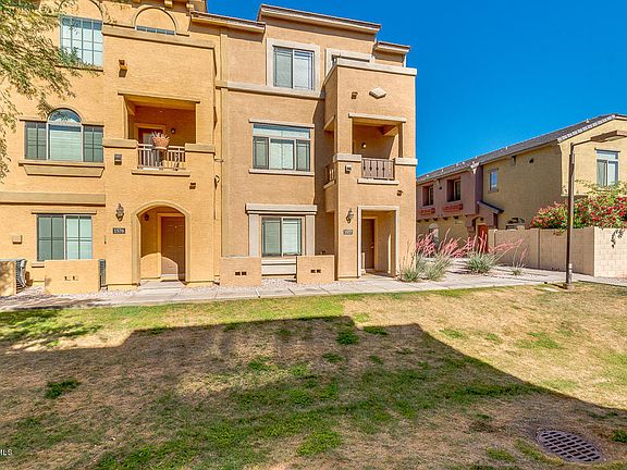 Priced to sell. Gated 4 bedroom 3.5 bath 2 car garage, corner unit w/ 2 balconies!Only 11 properties this size! This corner unit adds privacy & extra natural light. Open great room floorplan w/high ceilings, xtra large spacious kitchen, w/newer Quartz counters, extensive cabinetry & Stainless Steel Appliances including refrigerator! One bedroom, walk-in closet w/private bath on the first floor, upstairs is tiled great room & large open kitchen, half bath & patio. Large Master w/private Bath, walk-in closet & patio, 2 secondary BR & another full bathroom & laundry are upstairs & Washer/Dryer are included! Quartz also in all Bathrooms! Sloan Park Home of the Chicago Cubs Spring Training is across the street. Close to Tempe Marketplace, ASU, light rail, airport, easy access to freeways!