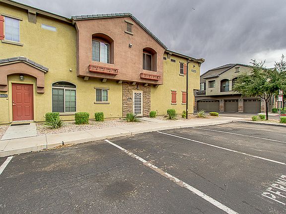 Amazing 2 bed, 2 bath property for sale in the Villagio Community! This gorgeous home boasts great curb appeal, desert landscaping, 1 car garage, PLANTATION SHUTTERS, formal dining and living area, LAMINATE flooring, GORGEOUS stone accent wall and a balcony. The gourmet kitchen offers ample cabinetry, WALK-IN pantry, and breakfast bar. The immaculate master bedroom features a FULL bath, private balcony exit, and walk-in closet. Water softener, reverse osmosis system, washer/dryer, and refrigerator all included! This wonderful condo has it all in a great community!