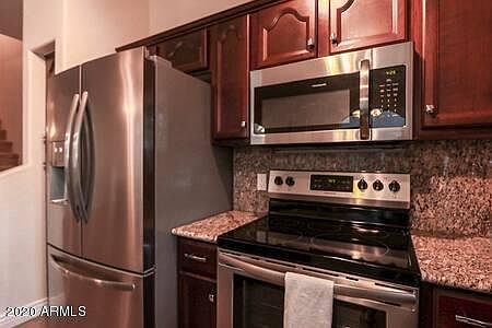 Come check out this beautifully maintained 3 bedroom, 2 1/2 bath townhome in the charming Villagio gated community. Eat in kitchen includes a center island breakfast bar, granite countertops, stainless steel appliances, an extra den or office and a 2 car garage. Perfect covered patio with room for entertaining! Refrigerator, washer and dryer to stay with property. Conveniently located close to one of the two pools and entrance gate. Low HOA fees! Close to Tempe Marketplace, Cubs Spring Training, Arizona State University, light rail and the freeways. This townhome is move in ready and the perfect home or vacation home. Home was also featured on HGTV's House Hunters! Home is fully furnished with all furniture and housewares available on separate bill of sale!