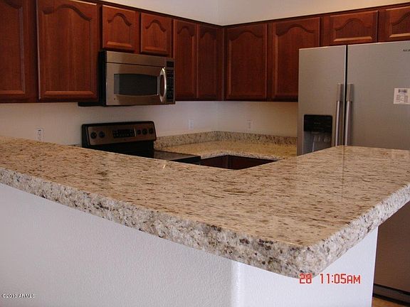 This beautiful 2BD/2BA townhome has granite countertop, Stainless Steel appliances, large great room, split floor plan, walk out balcony, large master bedroom, large laundry room, hard floor, washer/dryer, high-end in-wall speakers and additional storage in the garage. The unit is in perfect shape (all walls and ceiling were painted in August, 2013). It sits directly across from the Brand New Chicago Cubs Spring Training Complex in the desirable community of Villagio at Tempe. A short drive to ASU, freeways, shopping, Old Town Scottsdale and Mill Avenues dining and nightlife. Villagio at Tempe is a grate gated and guarded community with two pools and with a hot tub.