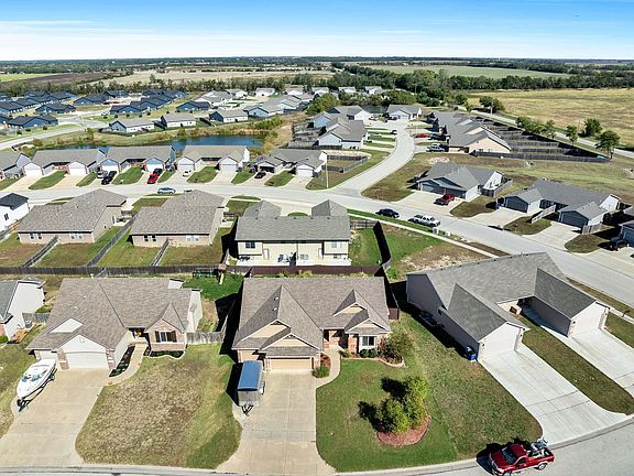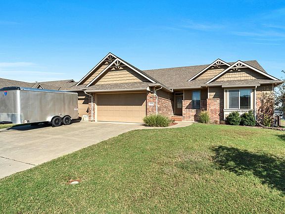 This gorgeous home has it all! 5 Bedroom, 3 Bath, 3 Car Garage with a walkout basement, split bedroom plan on the main level, large wet bar in the basement with a hidden storage room and several additional amenities. Located in the Rock Pointe Subdivision, with quick access to Wichita and other surrounding towns, this attractive home also features fireplaces on both levels, kitchen with granite countertops and walk-in pantry, master bath with separate tub and shower, covered deck with a stamped concrete patio below and a huge finished basement that has all the space for entertaining or family gatherings. This is a great opportunity at a great price!!