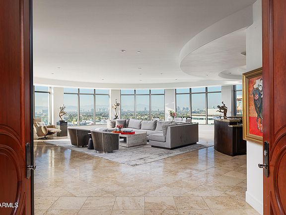 Commanding the very top tier of luxury living at Esplanade Place, Penthouse 2 represents the largest residence available in the building and a truly rare offering within the Arizona condominium market. Encompassing nearly 4,300 sq. ft, this extraordinary penthouse delivers a level of scale, privacy and presence more commonly associated with a custom estate- reimagined in a premier high-rise setting. Designed for those who seek both space and sophistication, the residence is complemented by three dedicated parking spaces and a substantial private storage unit, providing exceptional convenience rarely found in condominium living. From this elevated vantage point, the home enjoys breathtaking ''top of the world'' views stretching from South Mountain and sparkling downtown city lights to the renowned Biltmore corridor, creating a dramatic and ever-changing panorama both day and night. Esplanade Place enhances this singular offering with 24-hour guard-gated security, professional-grade services and a full suite of resort-style amenities including valet service for residents and guests, a rooftop pool with entertainment terraces and grills, an expansive club room adn state-of-the-art fitness center. With direct access to the Biltmore shopping and dining district and immediate proximity to the area's newest acclaimed restaurants, Penthouse 2 delivers a lifestyle defined by scale, service and unmatched urban luxury. This is more than a residence- it is a statement property, unrivaled within the building and nearly impossible to replicate anywhere else in the market.