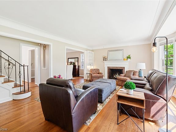 Gorgeous updated brick home with slate roof on incredible high-demand street! This is the one you've been waiting for! With hardwood floors, central air, remodeled kitchen, finished basement, and so much more. You'll fall in love from the moment you walk in. Kitchen features white Shaker style cabinetry with soft close drawers, beautiful natural stone countertops, hardwood floors, breakfast bar, new windows, and stainless-steel appliances. The light filled living room features built in cabinets, decorative fireplace, and original hardwood floors that continue into the formal dining room. Half bath is conveniently located on the 1st floor. Perfect for entertaining, the wonderful sunroom leads to the large paver patio overlooking the professionally landscaped private backyard. Upstairs are 3 freshly painted bedrooms on the 2nd floor including large primary bedroom with dual closets. Main bathroom is light, bright, and totally remodeled in 2019 featuring new vanity, white tile tub/shower, designer lighting, and all new fixtures. The finished 3rd floor includes the 4th bedroom, cedar closet, and a private half bath which could be converted back into a full bathroom. Custom Hunter Douglas window shades w/ "top down bottom up" in most rooms. Relax and enjoy the spacious rec room with daylight windows in the finished basement. TONS OF UPDATES- Freshly painted interior upstairs (2024), Exterior paint trim and garage (2024) Complete remodeled kitchen and main bath (2019). New Furnace and Central Air (2018) Rear Patio (2018) Washer, Dryer, Range, Fridge (2018) Dishwasher and microwave (2024). New garage door opener (2024) New roof on porch. Convenient location is close to Gesu, John Carroll University, Whole Foods, shopping and restaurants, parks, and a quick drive to Cleveland Clinic, University Hospitals, Case Western Reserve University, and world-class museums in University Circle. Come see why University Heights is named "The City Of Beautiful Homes".