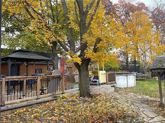 Welcome to this 4 level side split located in central Mountainside community. Modern kitchen w/back-splash and natural stone counter-top installed in 2022. Newer Stainless steel appliances in kitchen. Separate dining area and large living room with modern engineered hardwood floor. 3 bedrooms and 1 4-piece bath. Walk out to large deck perfect for family gatherings. Property also includes above ground pool. Single Car detached garage with extra room for hobbies. Basement is unfinished and ready for your personal touch.