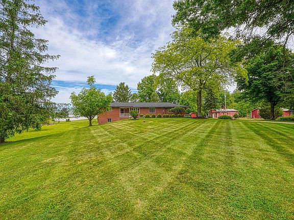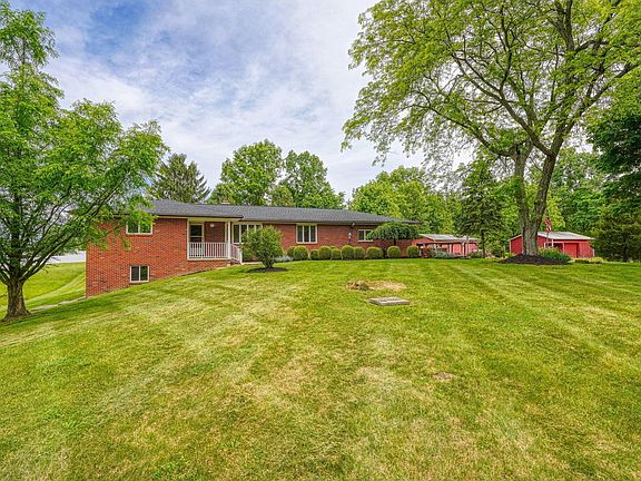 NOW 2.7-acres with 340' of road frontage and comes with all of the outbuildings in tact. Incredible opportunity. Make this all brick ranch with walkout lower level with two wood-burning fireplaces and hardwood floors your own dream home. Rock solid home that has been well cared for and has a new roof. Bring your own design ideas and the sky is the limit. Delco Water at the street. Columbia Gas service to the home. Outbuildings include: 10 x 24 covered equipment storage, 12 x 14 Dutch shed, 20 x 32 livestock building (with power), and a 24 x 32 building with power, concrete floor, workshop, and lean to exterior storage. Opportunity to purchase additional lot to the west currently for sale.