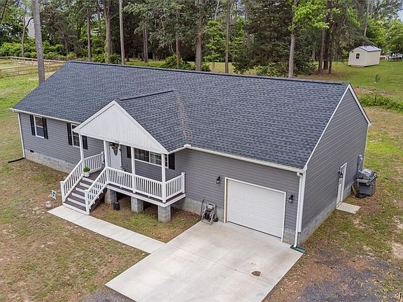 Location, Location! Built in 2020 this one-level home features a large country front porch, 3 bedrooms, 2 full bathrooms and one car attached garage. Take advantage of the open floor plan with luxury plank vinyl flooring, spacious kitchen that boasts white shaker cabinets, granite countertops, stainless steel appliances and large laundry room. Enjoy the peacefulness of living on just over half acre lot This is a wonderful opportunity to enjoy all that coastal Virginia has to offer short commute to Gloucester point beach, historical Yorktown, Coast Guard Station, Navel Base Yorktown, local restaurants, shops, parks and more! Not in a flood zone, No HOA and high-speed internet available. Don't miss out - schedule a showing today!