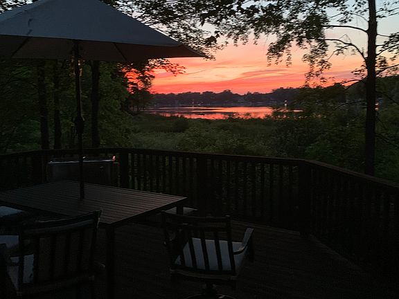 WOW! SECLUDED WOODED 1.8 ACRES AND WATERFRONT ON THE HIGHLY DESIRABLE ALL SPORT PRIVATE TRIANGLE LAKE. Your own private sanctuary. Feel like you are sitting up in the treetops with breath-taking views of the WHOLE LAKE. Open concept great room/kitchen/dining w/vaulted ceilings, hardwood floors, fireplace & abundance of windows all looking at the LAKE! Wake up to spectacular water views, then step out to your deck to enjoy your morning coffee. Master Suite also features neutral décor, spacious bathroom with jetted tub & euro tiled shower, walk in closet, built to be shared. First Floor Laundry. Professionally Finished Lower Level doesn't feel like a basement with 9 ft drywall ceilings, 2 lg doorwalls, 3 lg windows. Bar w/2 mini-fridges, dining & movie spaces, natural fireplace, 4th bedroom, office, full bath. Two levels of Entertainer's Dream Come True; inside and out. Bring your water toys and call your friends. This house is the place to be! Ask about the Triangle Lake Social Club.