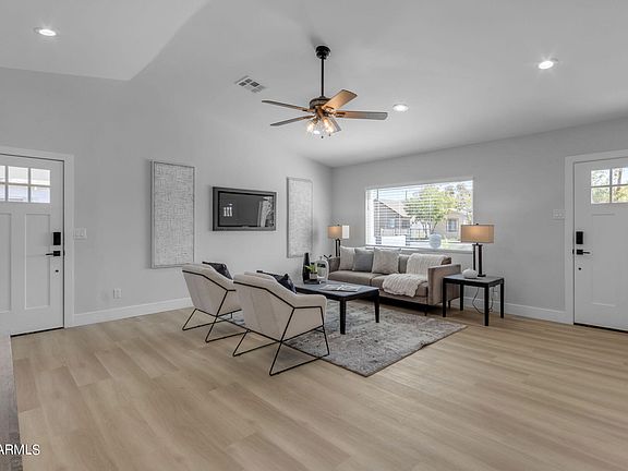 FURNISHED MOVE IN READY Incredible opportunity to own this STUNNING remodeled gem in the coveted Coronado Historic District! This home was meticulously reimagined, almost brand new leaving only three walls standing from the original structure. With a permitted 500 sq. ft. addition, this 3 bd/2 bath home offers all new A/C, Roof, vaulted ceilings, Windows, new stucco, new block wall, spray foam insulation & more. Kitchen features beautiful new cabinets & quartz, island, walk in pantry, all new stainless steel appliances including refrigerator. Owners suite w/oversized walk in closet, makeup vanity area, quartz tops, lighting & more. Guest bath w/tile shower surrounds, lighting, etc. LVT flooring. New landscaping. Conveniently located near downtown, Phoenix Country Club, Phoenix Children's & St. Josephs Hospital.