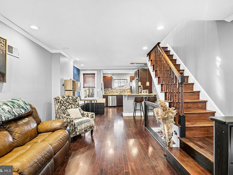 Beautifully renovated home located in the highly desirable Whitman section of South Philadelphia. The first floor features a spacious open-concept living and dining area with hardwood floors and recessed lighting throughout. The modern kitchen offers granite countertops, stainless steel appliances, and ample cabinet space, with a side door leading to an oversized deck—perfect for entertaining. The second floor features three bedrooms with generous closet space and a newly remodeled full bathroom, complete with a skylight. The finished basement offers additional living space with a tiled rec room, half bath, laundry area with washer and dryer, and access to a private walkout yard. Plans are currently underway for a new 52,000 sq. ft. shopping center nearby, featuring a grocery store, restaurants, and shops, with ample parking—adding even more convenience to the area. Excellent location close to the Philadelphia Sports Complex, shopping, public transportation, and major highways. Move-in ready and a must-see!
