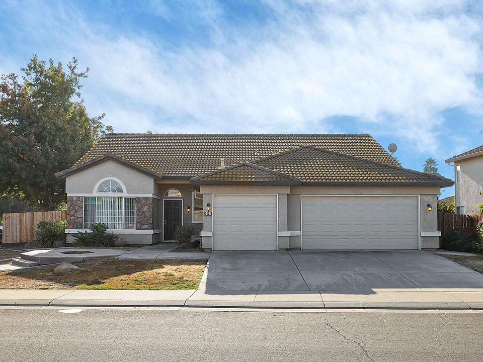 Welcome to 2402 Sailboat Court! This beautiful single story home offers over 2100 sq. ft of living space on a desirable corner lot in a peaceful cul-da-sac. Featuring 3 bedrooms plus a den(optional 4th bedroom), 2 full bathrooms, and a 3 car garage, this property is designed for both comfort and functionality. Step inside to find high ceilings, tiled flooring throughout (with carpet in the bedrooms), and an inviting open-concept layout. The spacious kitchen is equipped with granite countertops, a large breakfast bar overlooking the family Rm, and a cozy dining area with a fireplace-perfect for everyday living. A formal dining and living Rm provide additional space to gather, while double doors open to the versatile den, ideal as a home office or guest Rm. The primary suite is a relaxing retreat, complete with a ceiling fan, sliding glass door with backyard access, dual walk-in closets, dual vanities, a soaking tub, and a separate shower. Outdoors, the backyard features extensive concrete work on both sides of the home, offering plenty of space for entertaining, play or future customization. The front yard's hardscaped landscaping provides great curb appeal, with room to add your personal touches. Don't miss the chance to make this spacious, well-designed home your own.