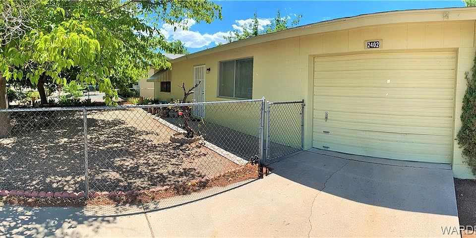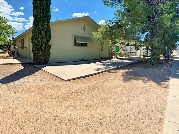 Southeast Kingman is a great area with easy access to the center of town. This large corner property has solid features with shaded parking, mature trees, front and backyard fencing including a block partition wall. Enjoy this oversize concrete patio with shade and privacy. There is room for more covered parking, a pool or additions with this lot profile. Call us for your personal showing appointment.