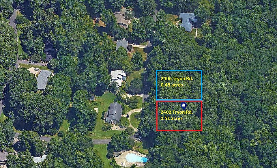 Very special for fast sale, low price.. Great Investment Opportunity. 2406 Tryon Rd (0.45 acres - $48.500 ) and 2402 Tryon Rd (0.51 acres – $52.500 ). two land for sale together. Don't miss out on the opportunity to own one of the last two lots left in Colony Park, Tryon Rd! Build your dream home on this beautiful tree lined street.Located on the back street of Pulte Canterbury Homes, close to Duke University and Hospital and the University of North Carolina and the UNC Hospital. A short drive away, Durham city center and located just 4 miles south of the South Square and features Super Target, Sam's Club, Office Store, PetCo, Toys R Us, Chick-fil-A, Pizza Hut, Starbucks, is less than 5 miles away and includes Best Buy, Barnes and Noble, Old Navy, Walmart and T.J.Maxx. Streets at Southpoint is a short drive away with many options for shopping and dining. PERFECTLY location, to feel like the middle of nowhere but 5 minutes from everywhere!