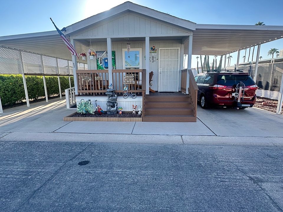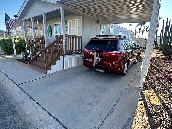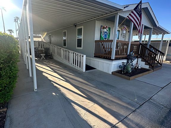 This delightful 2020 Clayton home offers 2 bedrooms and 2 bathrooms, providing both comfort and modern living. With dimensions of 15.5 x 52.25 ft, the spacious floor plan includes: Primary suite with 2 walk-in closets and a walk-in shower 2 brand-new ADA compliant toilets, ADA complaint ramp for convenience and accessibility Natural gas stove with Southwest Gas and a 1 yr old refrigerator valued at over $3,000. Step outside to a welcoming front deck with Tyvek decking, perfect for sipping morning coffee while enjoying beautiful sunrises. The home also features a two-car carport, two storage sheds, and an entertaining area under the south carport. Community amenities include a pool, hot tub, fitness center, and pool table, ideal for both relaxation and recreation. Space rent includes water, sewer, and trash (City of Yuma services), making living here even more convenient. For added peace of mind, the property is equipped with two security lights. Financing options are available through a manufactured home lender with as little as 5% down. Located near shopping and dining at Avenue B and 16th St, this home combines comfort, convenience, and lifestyle in one incredible package. Don't miss your chance to own this beautiful Yuma home!